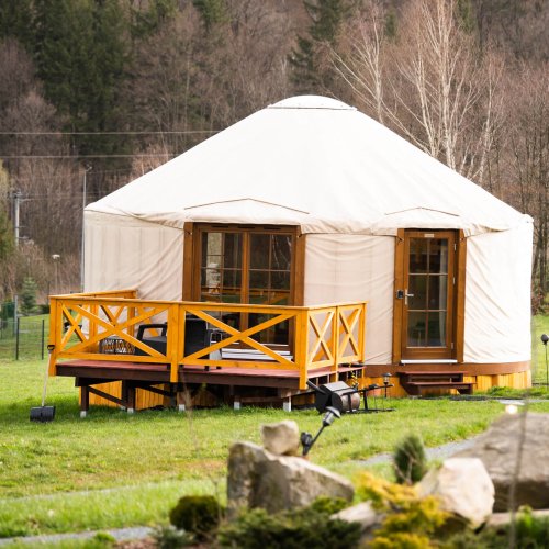 Stara Morawa to niezwykła wieś w województwie dolnośląskim. Jest rozgraniczeniem między dwoma pasmami górskimi - Jurty całoroczne to doskonałe rozwiązanie zarówno na lato, jak w zimę. Posiadają ogrzewanie oraz klimatyzację. Stworzone zostały z naturalnych materiałów, jak bawełniane poszycie i drewno jodłowe. Najbliżej im do konstrukcji pomiędzy domkiem letniskowym a namiotem. To połączenie pozwala na kontakt z naturą. Jednocześnie zapewniając wygodę i standard, który nie odbiega od klasycznych domków. Jurty, tak samo jak kopuły, posiadają w pełni wyposażoną łazienkę, aneks kuchenny i 5 miejsc noclegowych. Zarówno domki, jak i jurty do wynajęcia, oferują również możliwość spędzenia wakacji z psem w górach. Zabierz ukochanego czworonoga i ciesz się urokami glampingu - luksusową wersją wypoczynku blisko natury.