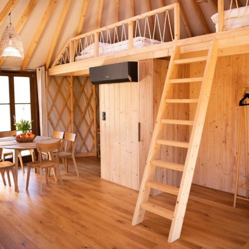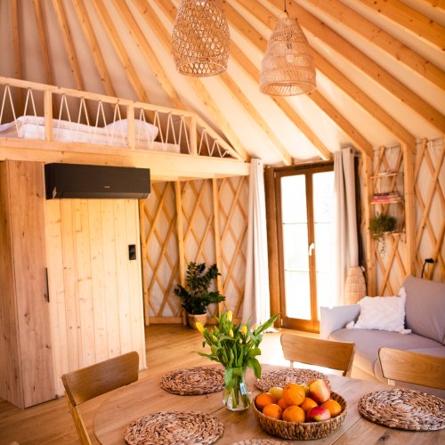 Jurty są przystosowane do całorocznego użytku, co oznacza, że możesz cieszyć się nimi zarówno w słoneczne dni, jak i w chłodniejszych porach roku. Posiadają one skuteczną i komfortową klimatyzację, która umożliwia dostosowanie temperatury wewnątrz jurty do Twoich preferencji. Bez względu na pogodę na zewnątrz, w naszych jurtach zawsze panuje przyjemny klimat. Ważne jest również, że nasze jurty są wyposażone w ekologiczny system ogrzewania, który zapewnia przyjemne ciepło nawet podczas najzimniejszych dni.
