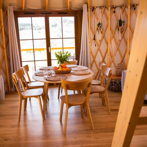 Koło jest pierwotnym kształtem, manifestującym się powszechnie w przyrodzie. To dlatego w okrągłej przestrzeni poczujesz się tak bezpiecznie i swobodnie. Nocą doznasz głębokiego kontaktu z naturą, podziwiając gwieździste niebo przez okno wieńczące kopułę jurty. Rano skosztujesz wyśmienitych lokalnych specjałów od miejscowych rolników i serowarów. Tak właśnie smakuje sielanka.