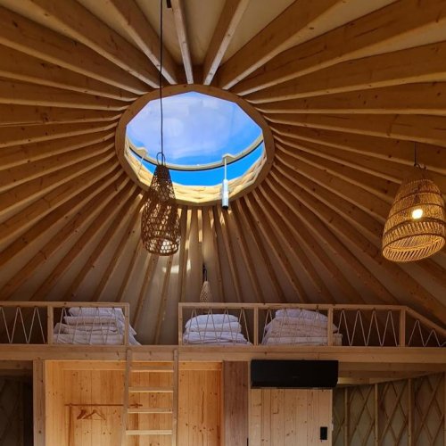 W jurtach natomiast znajdziesz niezwykłe okno dachowe w postaci świetlika. To nietypowe rozwiązanie, które pozwala Gościom podziwiać kopułę nieba bez wychodzenia z wnętrza jurty. To niesamowite doświadczenie, które dodaje magii i romantyzmu pobytowi w jurtach.